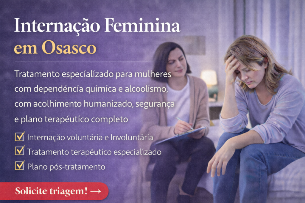 Se você procura internação feminina em Osasco, solicite uma triagem para entender o melhor caminho: tratamento intensivo, internação voluntária ou outras abordagens adequadas.